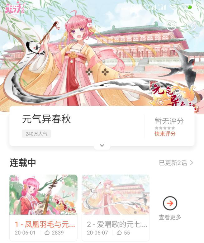 和生日EP同步,《元气异春秋》在6月1日当天,第一时间上线了各大主流漫画平台。而仅腾讯动漫一个平台,漫画在腾讯漫画、快看漫画、爱奇艺、有妖气等主流平台的总热度已逾1300万,在新上架漫画里表现突出。粉丝展开了孜孜不倦地“催更”,漫改动的计划也已提上日程。