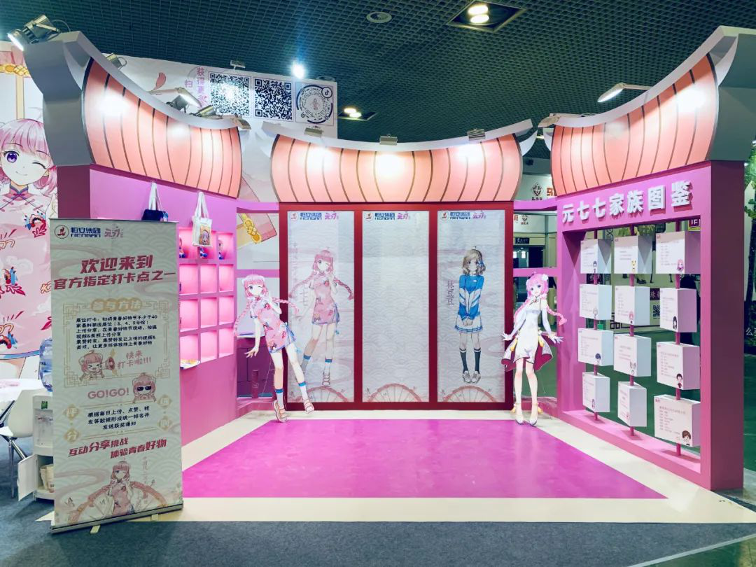场景现场充满中国风的元素,不仅展示了元七七IP的品牌特点,还贴近年轻人的审美与喜好。