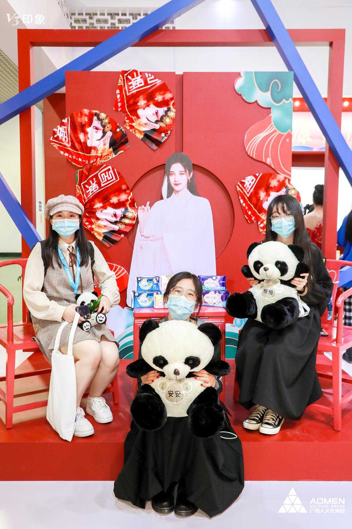 彩神vll展位的正红布景极具特色,吸引了众多国风爱好者前来打卡,不少汉服小仙女都被熊猫玩偶萌翻了,纷纷合影留念。