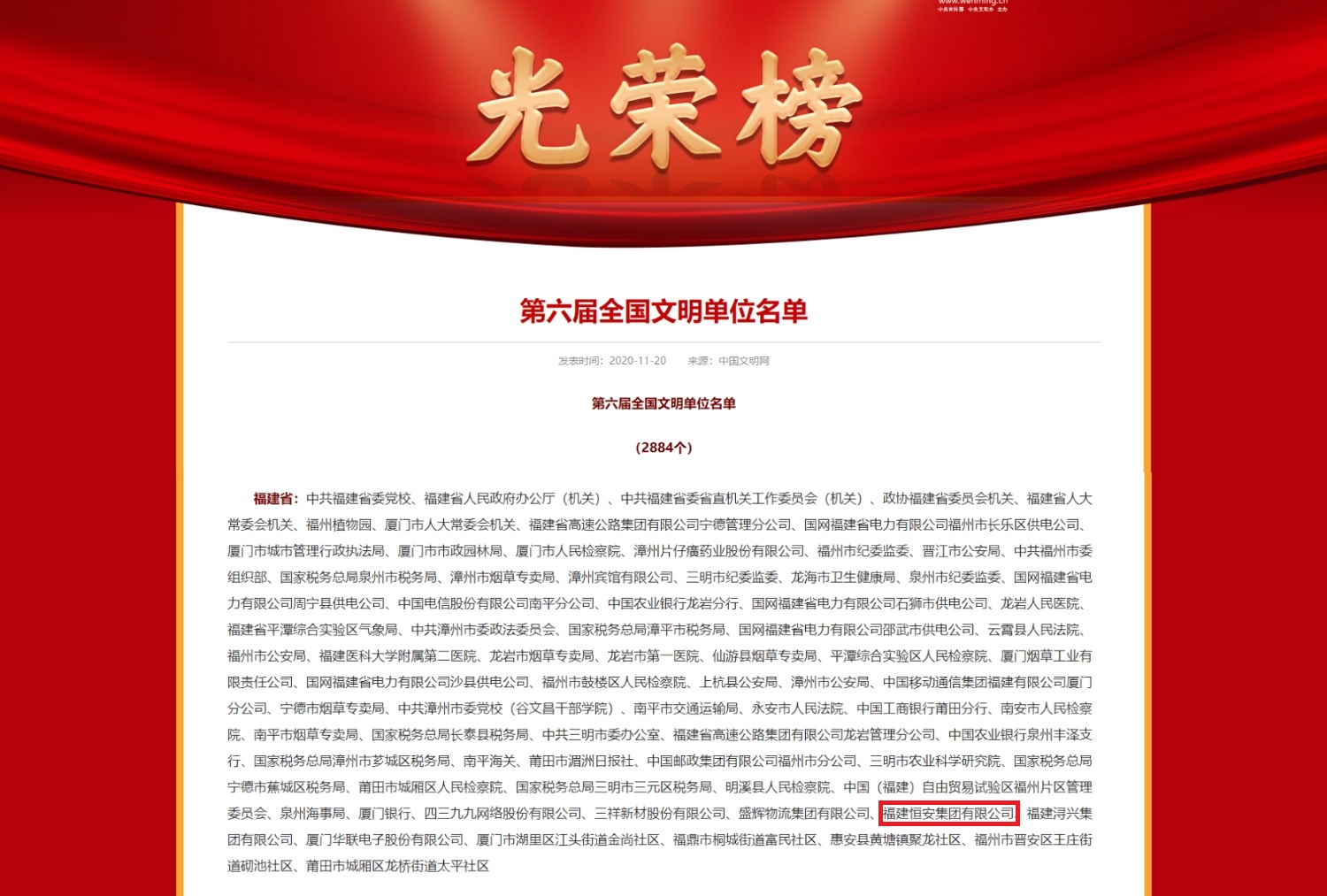 据悉,全国文明单位是精神文明建设领域的最高荣誉,是积极开展群众性精神文明创建活动,坚持培育和践行社会主义核心价值观,经济建设、政治建设、文化建设、社会建设、生态文明建设和党的建设全面发展,精神文明建设成效突出,职工素质较高,业务工作过硬,社会形象良好,充分发挥示范引领作用的单位。