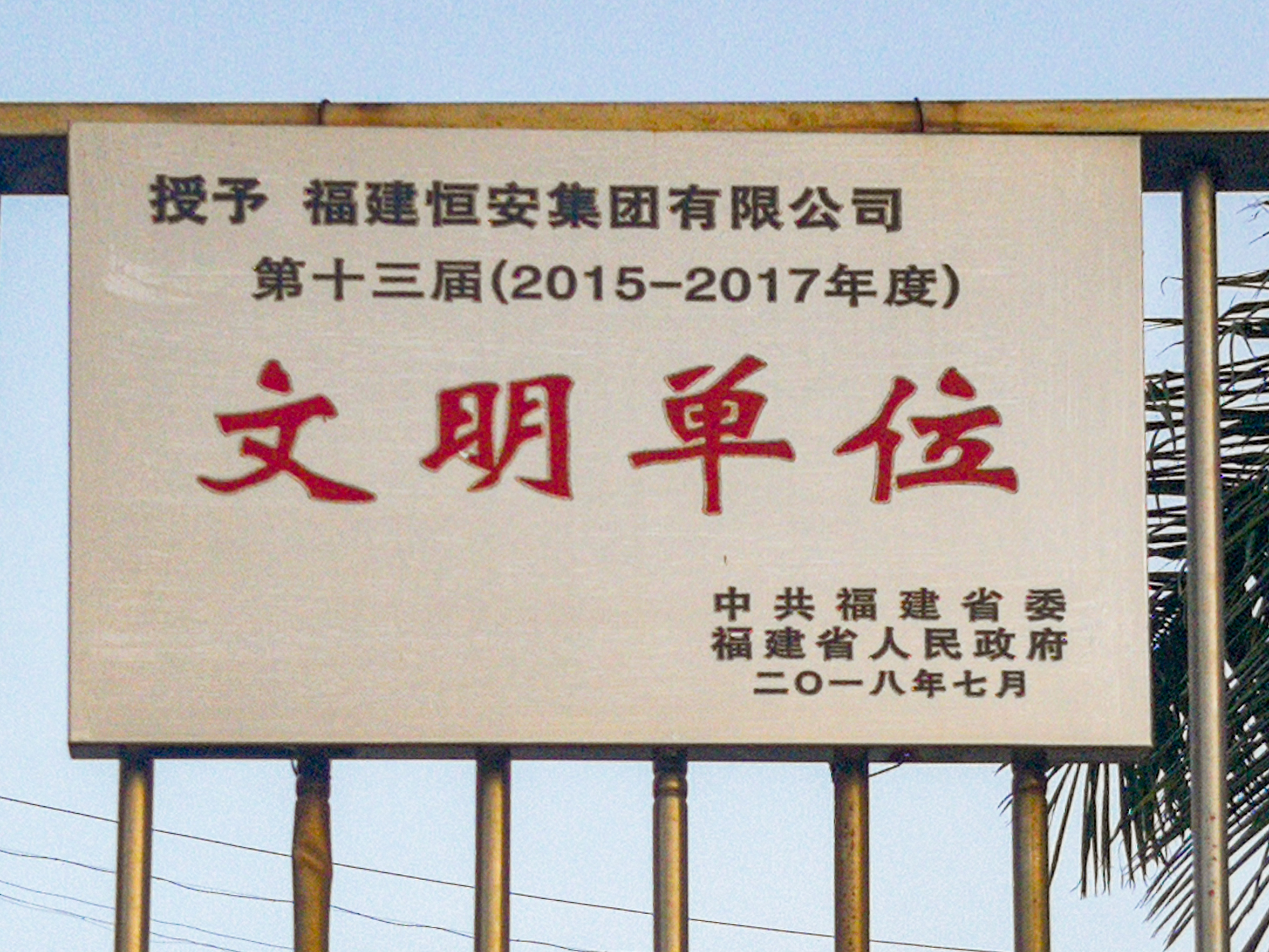 早在上世纪90年代,恒安就进入“全国文明乡镇企业”行列,新世纪又成为福建省文明单位。近年来,集团紧紧围绕提升职工素质、促进企业发展,认真贯彻中央文明委关于深化群众性精神文明创建活动和新时代文明单位创建工作的精神,努力在企业创新和管理变革的实践中培养时代新人、弘扬时代新风。