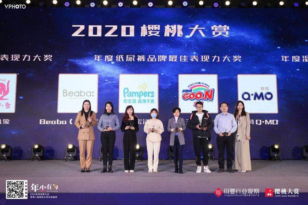 奇莫Q·MO荣获第六届樱桃大赏“年度纸尿裤品牌最佳表现力大奖”