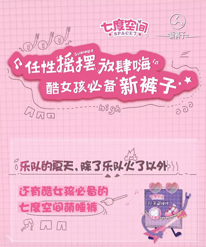 除此以外 我们每一位酷女孩都必备的七度空间萌睡裤也着实火了一把!360°防护不怕漏守护每一位酷女孩都能在新裤子乐队的音乐中尽情任性摇摆放肆嗨!