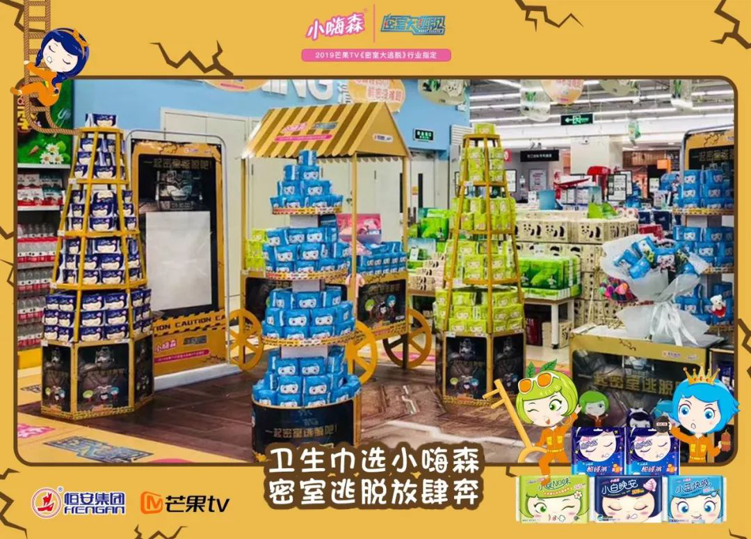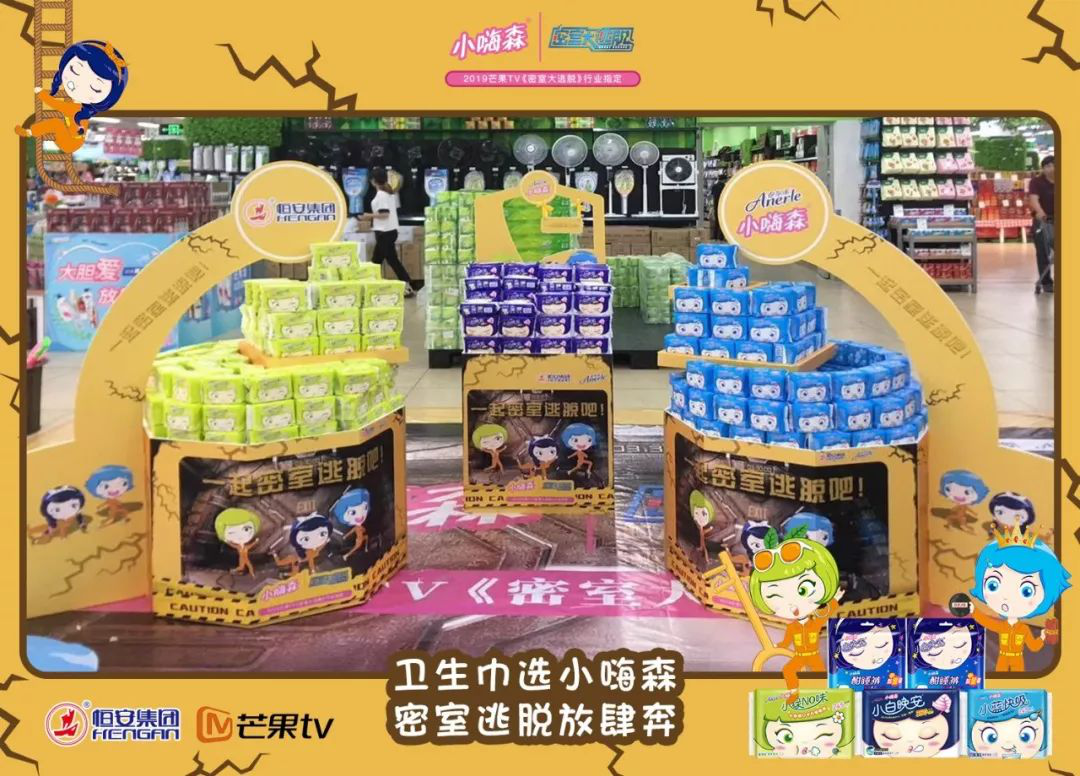 这次小嗨森除了线上发力,达到了在年轻消费者群体中“种草”的效果,还通过节目植入带有小嗨森ip标识的限量赠品,在各大商超开展带有密室大逃脱同款赠品的买赠促销,来达到线上和线下的联动,通过粉丝经济吸引更多的用户,增加新的用户体验并促进销售,实现“拔草”的行为,综艺IP由此真正落地。