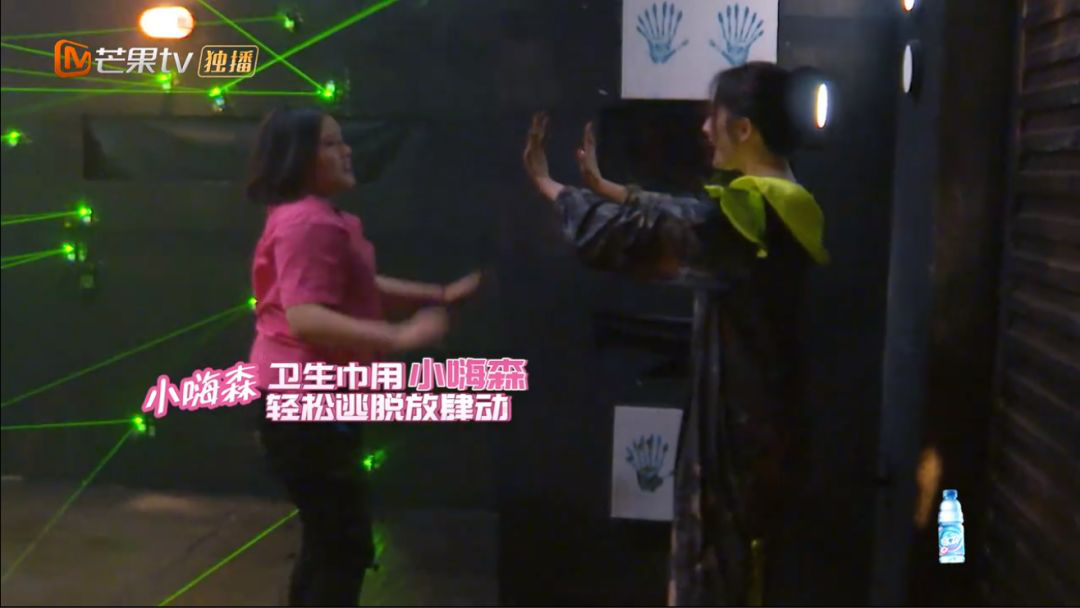 小嗨森在《密室大逃脱》中的专属脑洞艺人——品牌卧底Hold住姐。发现小嗨森后,口播输出品牌产品slogan “卫生巾选小嗨森,密室逃脱放肆奔”。
