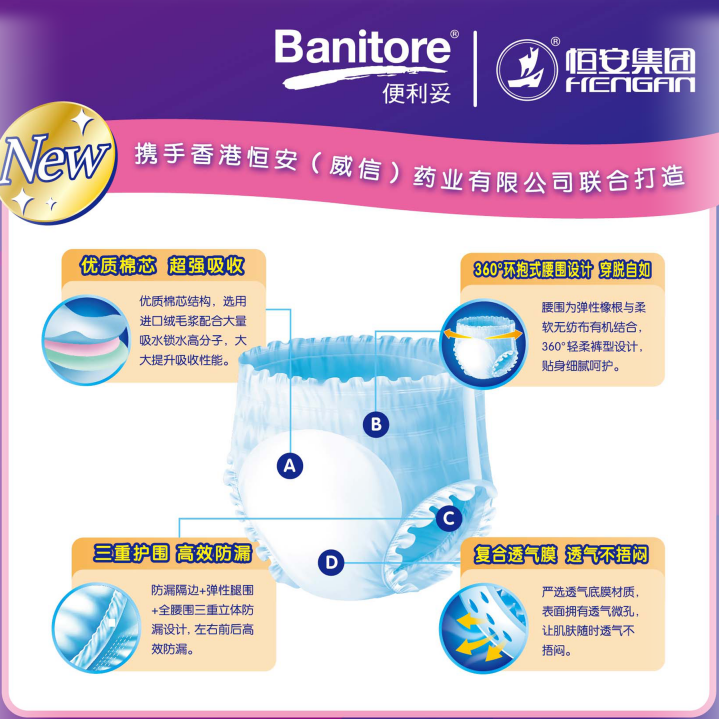 鉴此,为满足市场消费需求及行业发展要求,完善便利妥品牌产品线战略布局,补足成裤品类便利妥品牌在成人护理领域拉拉裤类别的缺失,助力电商便利妥巴销售,从而进一步抢占成裤失禁护理线上市场,在这种情况下,新品便利妥高吸防漏成人拉拉裤产品正式在2019年5月份面世。