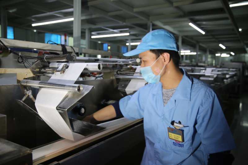 1月23日,彩神vll便有柯梅阳一样刚刚休假回家的员工返厂,恢复生产消毒湿巾。非常时期,工人们积极配合、加班加点,从三班制转为两班制,工作时间从原来的每天8小时增加到12小时,产能也从复工初期的每天3000件逐步提升到近万件。